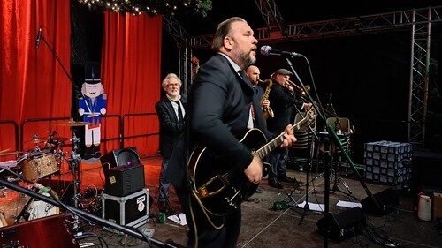 | Eine tolle Stimmung herrschte am Samstag beim Auftritt der Sazerac Swingers um Frontmann Max Oestersötebier auf dem Spexarder Weihnachtsmarkt. |