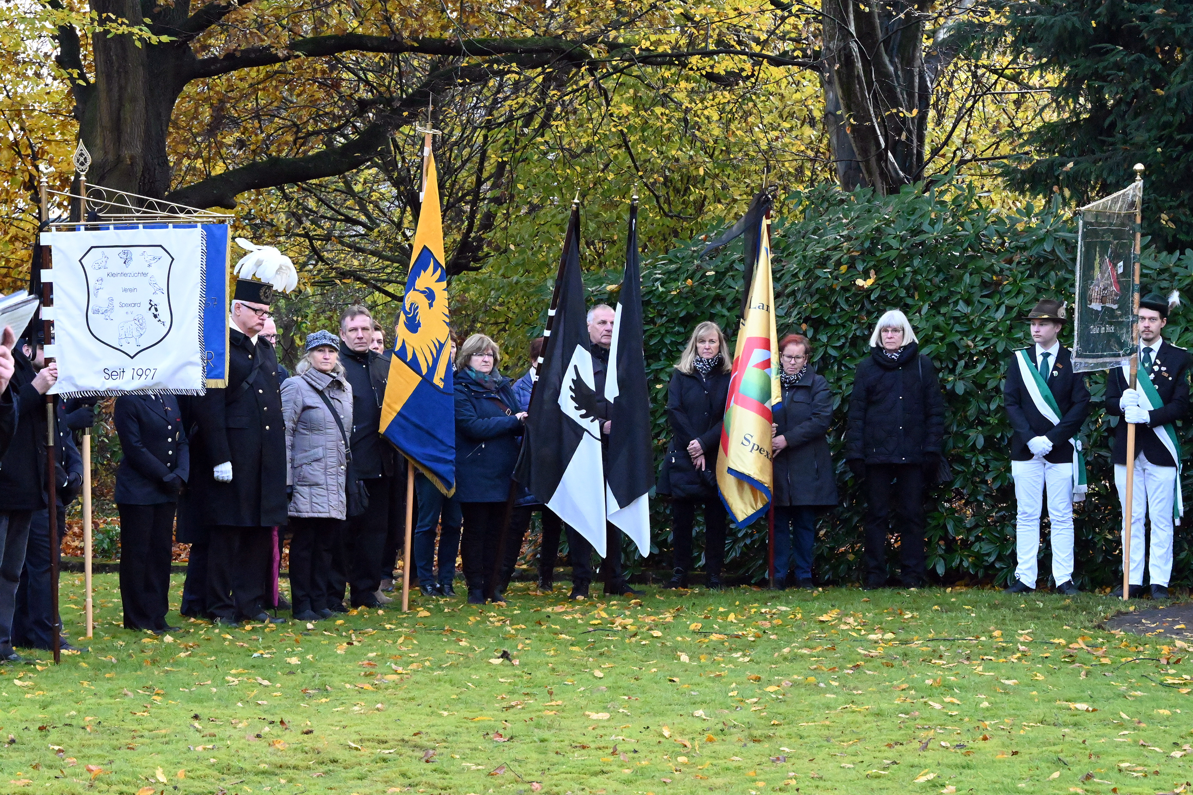 Die Feierstunde am Volkstrauertag in Spexard wird von der Schützenbruderschaft St. Hubertus ausgetragen und hat eine sehr lange Tradition. Der Einladung waren die Abordnungen der heimischen Vereine und der Landsmannschaften gefolgt. Nach dem Trauermarsch vom Kirchhof zum Kriegerdenkmal spielte der Musikzug Spexard der Freiwilligen Feuerwehr einen Choral und am Ende der Veranstaltung die Nationalhymne vor rund 150 Teilnehmern.