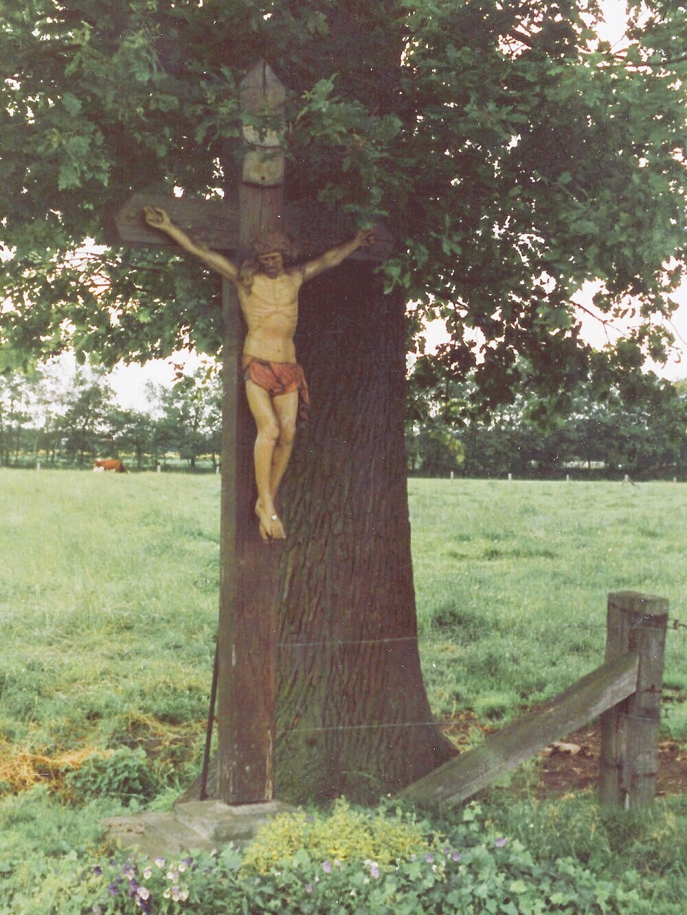 | Das Flurkreuz an dieser Stelle hatte im Jahr 1986 noch kein Dach als Schutz vor der Witterung. |