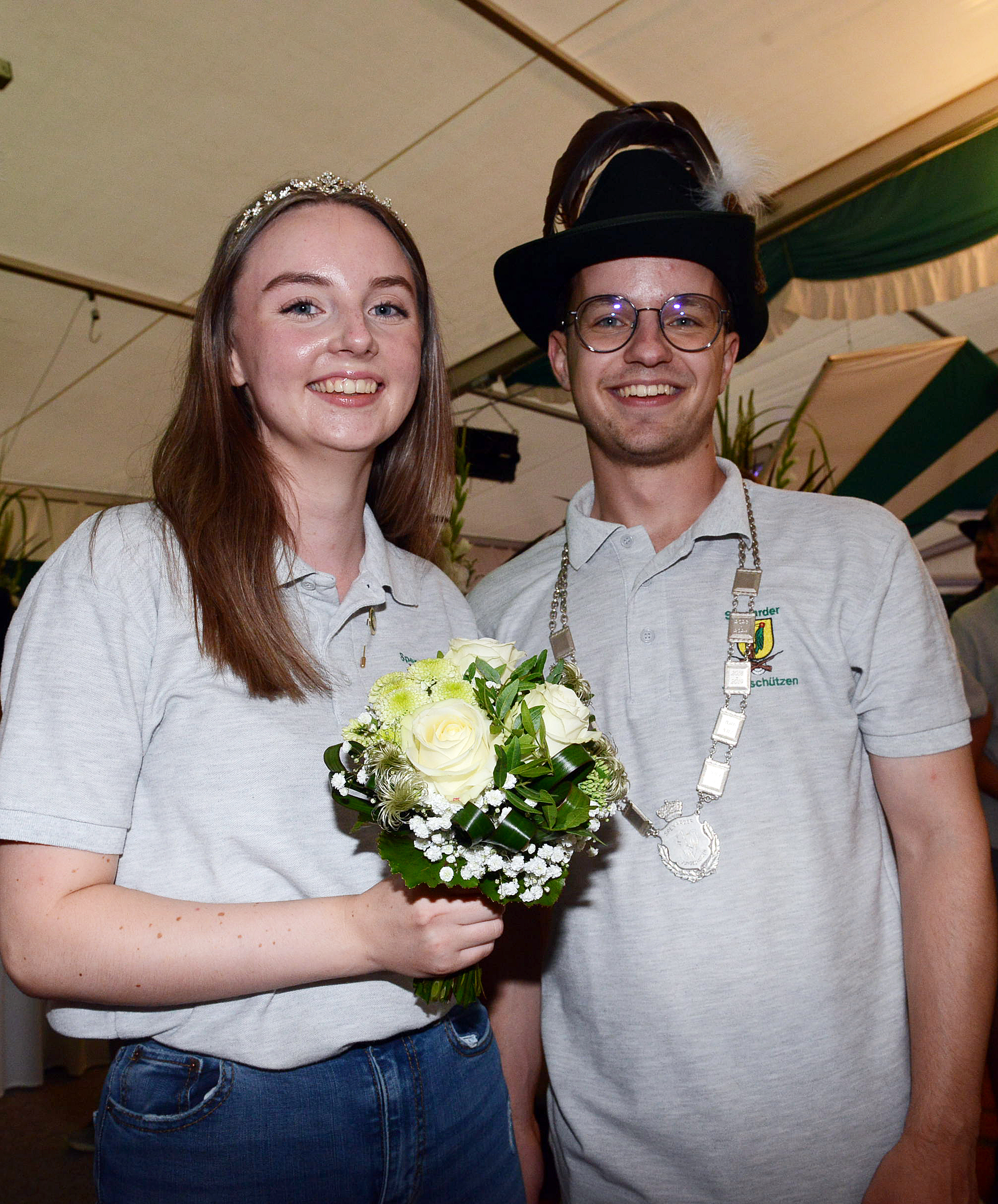 Lennard Stüker (rechts) ist neuer Jungschützenkönig. Er wäjlte Hannah Fortenbacher zu seiner Königin.