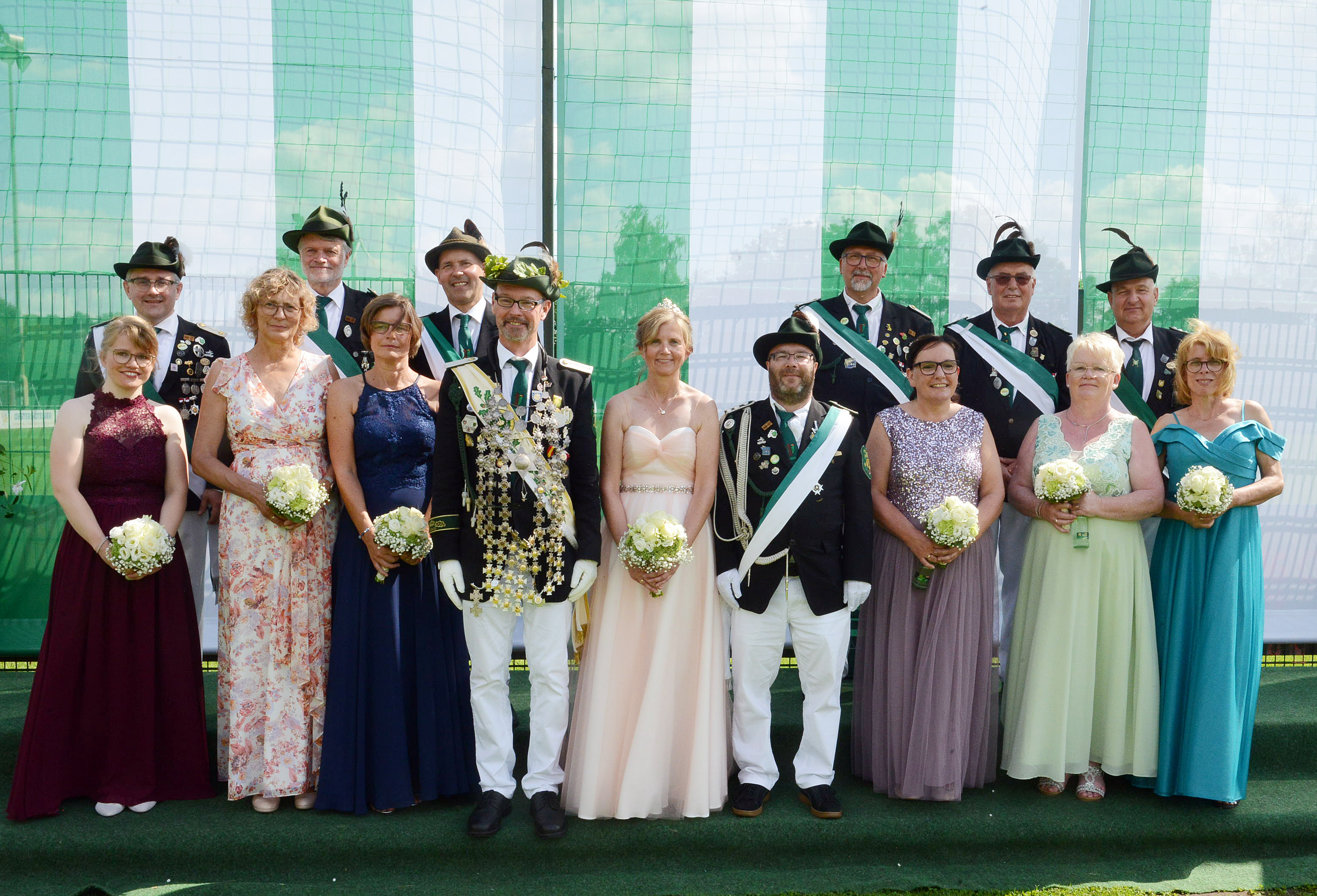 Die neue Throngesellschaft von Spexard: Nadine und Heinz Krebs (v.l), Petra und Hans-Jürgen Laue, Nina Brüggemann und Peter Wilde, Königspaar Dirk und Astrid Fortenbacher, Adjutant Marco Zons, Sandro und Barbara Andreolle, Siegfried und Elke Kleinsteuber, Andreas Setter und Ursula Setter-Aretz.