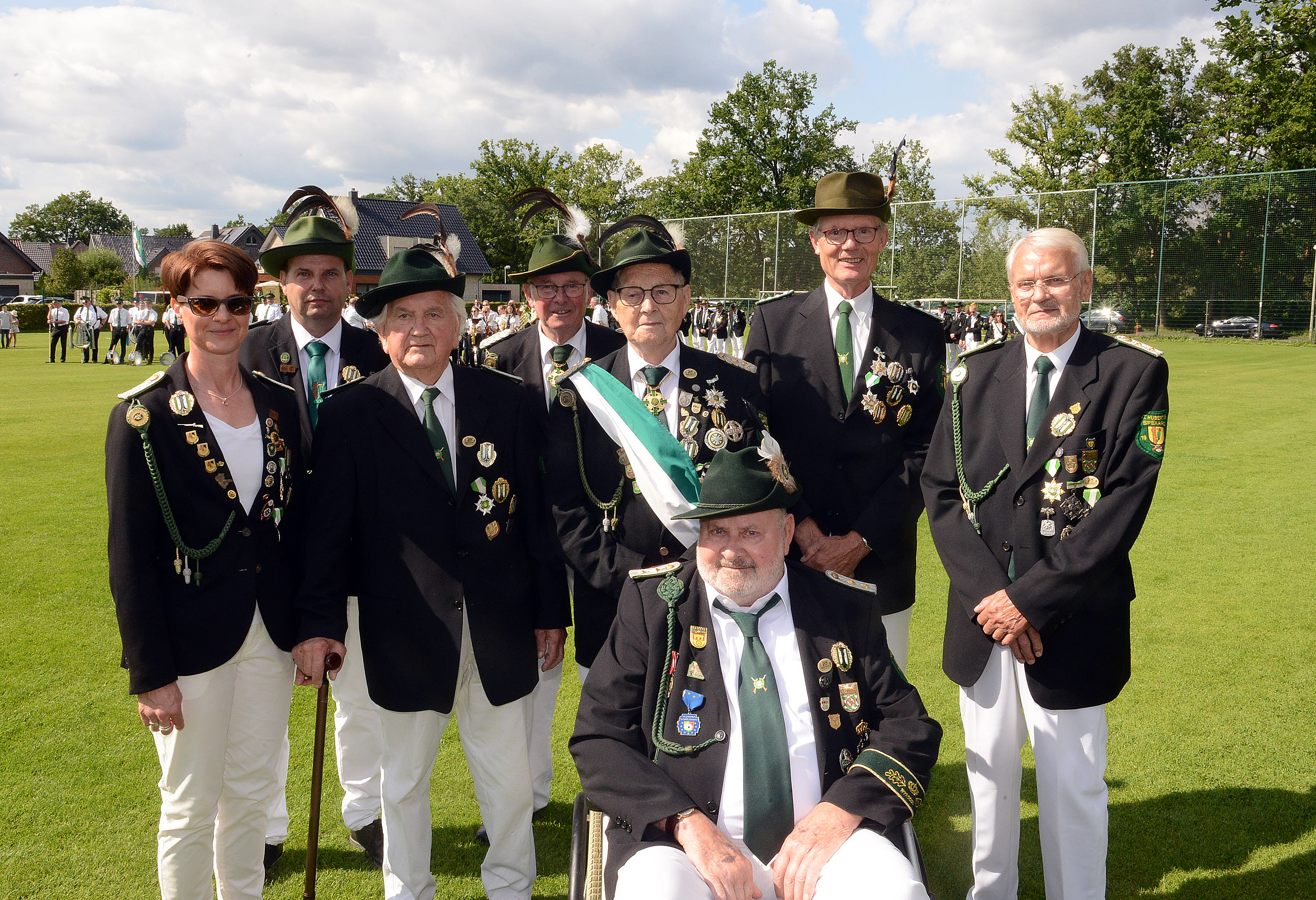 Die Jubilare der Bruderschaft: Ulrike Westhoff (v.l.), Carsten Imping, Franz Weiß, Christoph Stükerjürgen, Karl-Heinz Appelhans, Josef Cordfulland, Leo Spexard und Josef Schumacher.