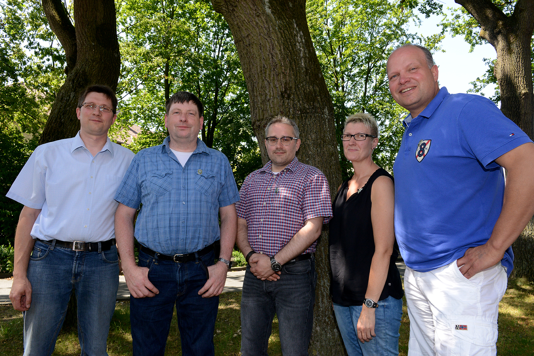 | Der Brudermeister Maik Hollenhorst (v.l.) und die Jubilare Jürgen Thiesbohnenkamp, Heinz Krebs, Sabrina Kreft und Markus Toppmöller. |