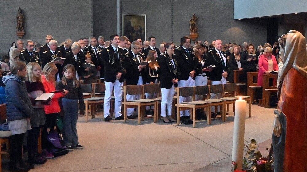 Für die verstorbenen Vereinsmitglieder brannte die Hubertuskerze der Bruderschaft. Die musikalische Begleitung leistete der Musikzug Spexard der Freiwilligen Feuerwehr unter der Leitung von Christoph Wiemann. Im Pfarrheim traf sich die Schützenfamilie anschließend zum Frühstück, an das sich eine Vorführung des Filmes vom Schützenfest anschloss.