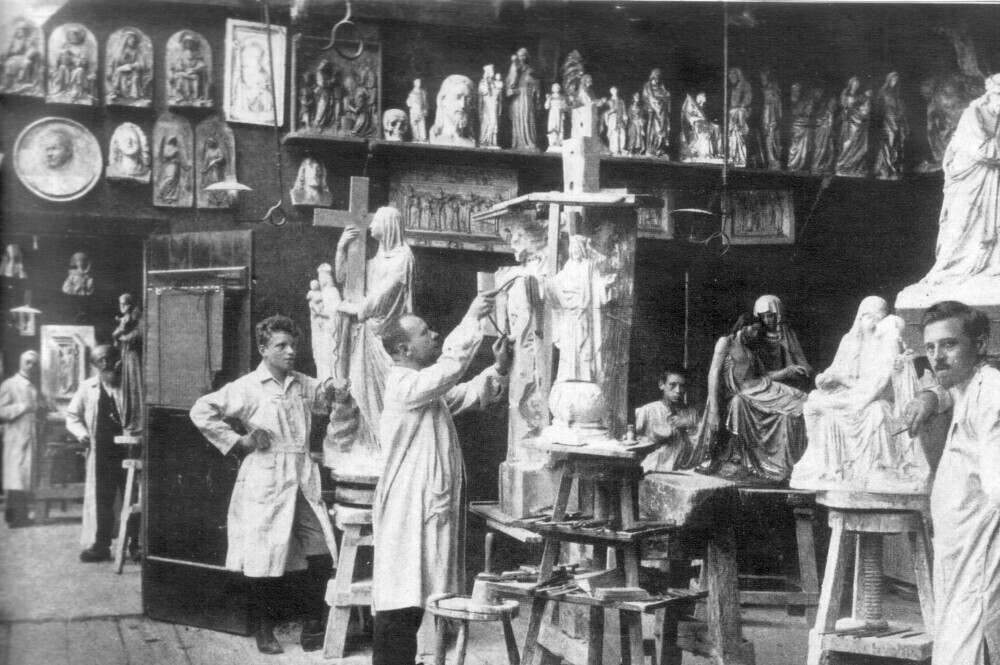 | Ein Blick in die Werkstatt der Bildhauerei A. Mormann in Wiedenbrück. |