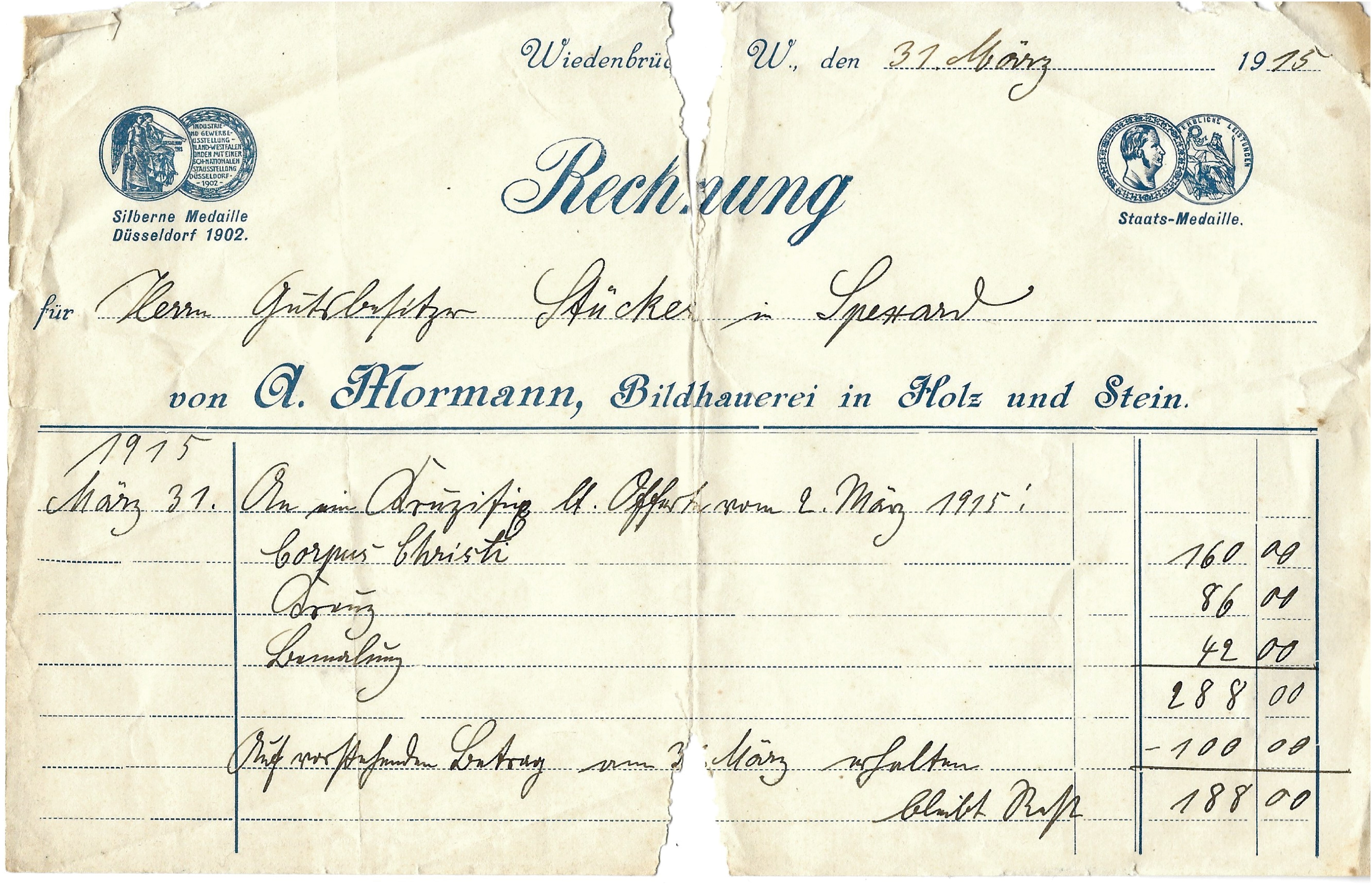 | Diese Rechnung schickte die Bildhauerei A. Mormann an den Kolon Stüker. |