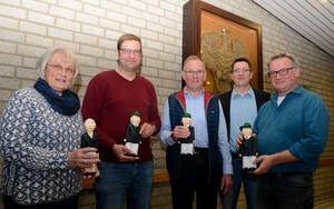 Der wiedergewählte Brudermeister Maik Hollenhorst (zweiter von rechts) verabschiedete Magdalene Willmann (v.l.), Ingo Linnemann, Christoph Stükerjürgen und Ulrich Steinkemper.