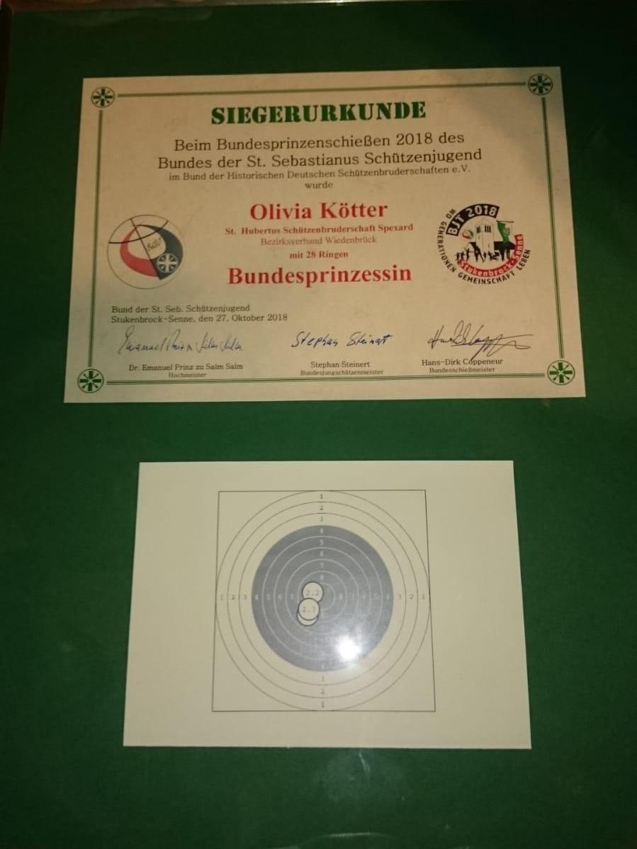 Olivia hat sich somit für das Bundes-Prinzen-Schießen in Schloß-Holte qualifiziert.