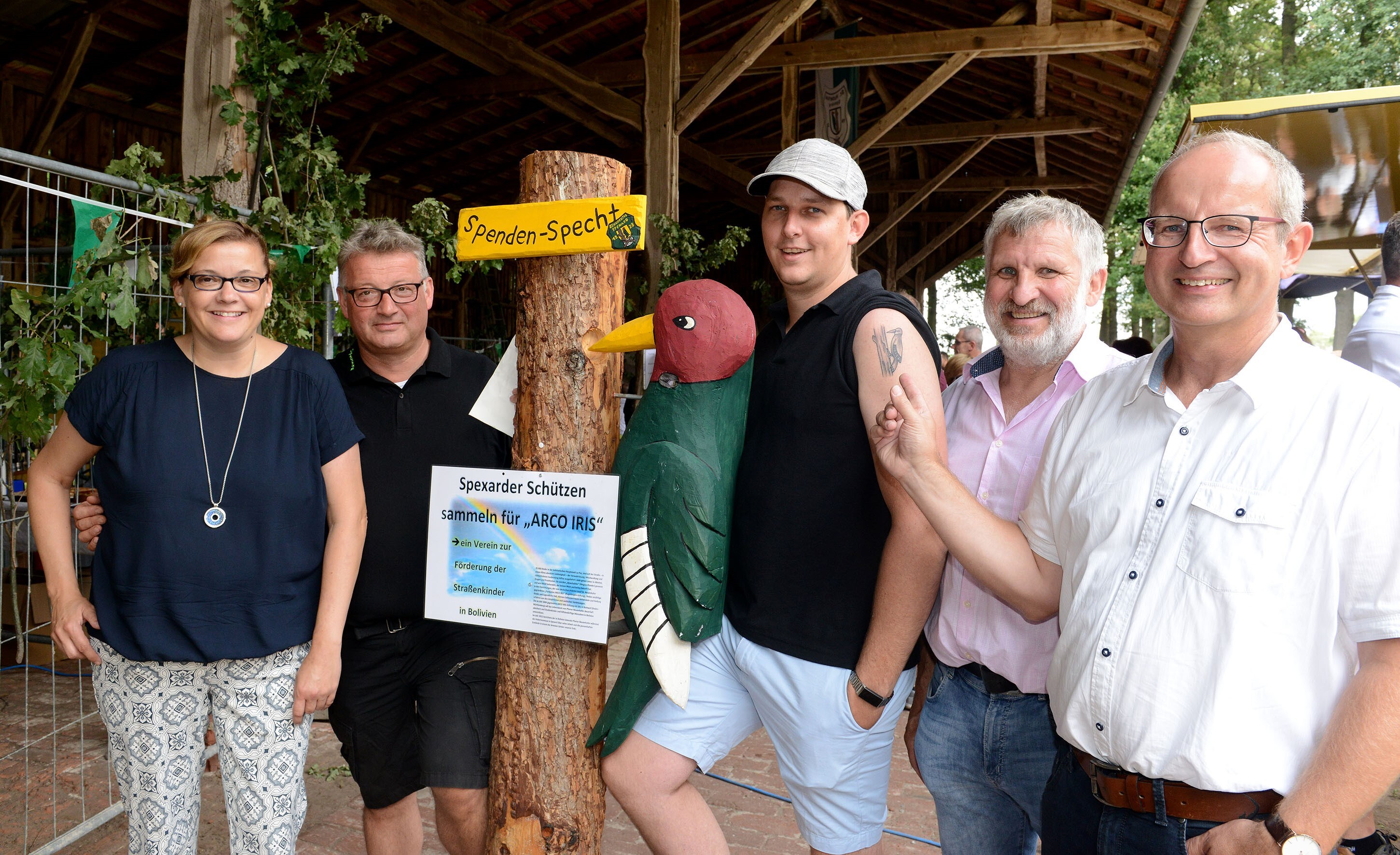 Die Schützenbruderschaft St. Hubertus Spexard hat 2.100 Euro für die Betreuung von Straßenkindern in Bolivien gespendet. Die Schützen unterstützen das Familienprojekt „Arco Iris“ (zu Deutsch Stiftung Regenbogen) in der bolivianischen Hauptstadt La Paz. Das soziale Werk des deutschen Pfarrers Josef Maria Neuenhofer kümmert sich seit 1994 um die Bedürfnisse von Straßenkindern und Familien. Mit der gespendeten Summe werden sechs Familien ein Jahr lang unterstützt. Die Aktion der Hubertusschützen soll in den kommenden Jahren fortgesetzt werden. Der Erlös vom Verkauf von Getränken und Speisen nach der Fronleichnamsprozession fließt in den Spendentopf wie auch der jährliche Trödelmarkt der Schützen, der durch den Einsatz von Dirk Fortenbacher unterstützt wird. Am 3. Oktober trödelten die Schützen am Spexarder Bauernhaus. „Wir führen ein ziemlich privilegiertes Leben und brechen und keinen Zacken aus der Krone wenn wir für diejenigen Spenden, die es nicht so gut getroffen haben auf dieser Erde“, sagte Friedhelm Stüker, der Sprecher der Spexarder Spendenaktion. Der Betrag wurde in diesem Jahr erstmalig verdoppelt. Dazu trug eine Wette zwischen Christian Barkusky und Ulrich Steinkemper bei. Auf dem Schützenfest wurde für die Erstellungskosten eines Tattoos unter den Besuchern gesammelt. Das Tattoo in Form eines Spechts sollte Christian Barkusky auf dem Oberarm tätowiert werden. Das Vorstandsmitglied der Schützen nahm davon Abstand und der gesammelte Betrag floss mit in die Spendensumme.