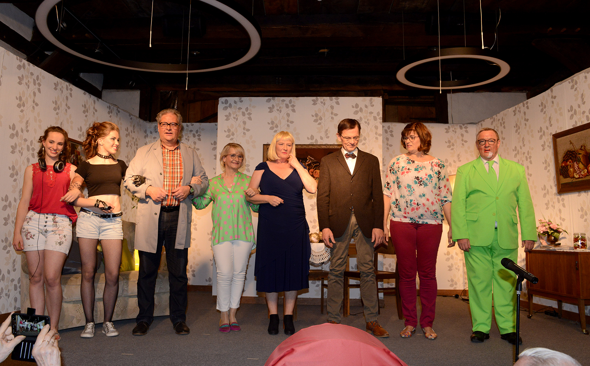 | Der Theaterkreis vom Heimatverein: Aileen Kahlert (von links), Marie Kahlert, Ralf Setter, Petra Stelter, Helga Stöhr, Eckhard Westerbarkei, Agnes Koch und Peter Barkusky. |